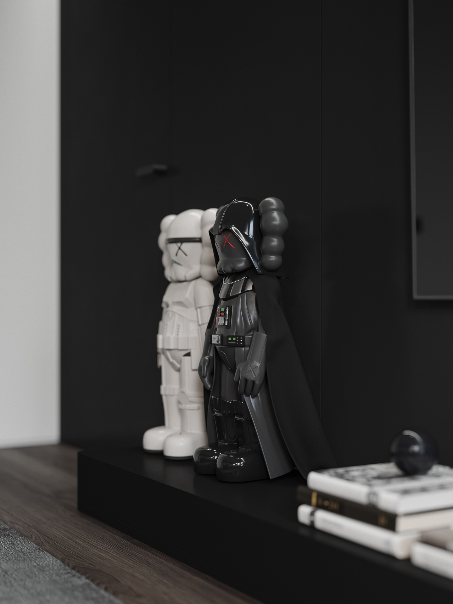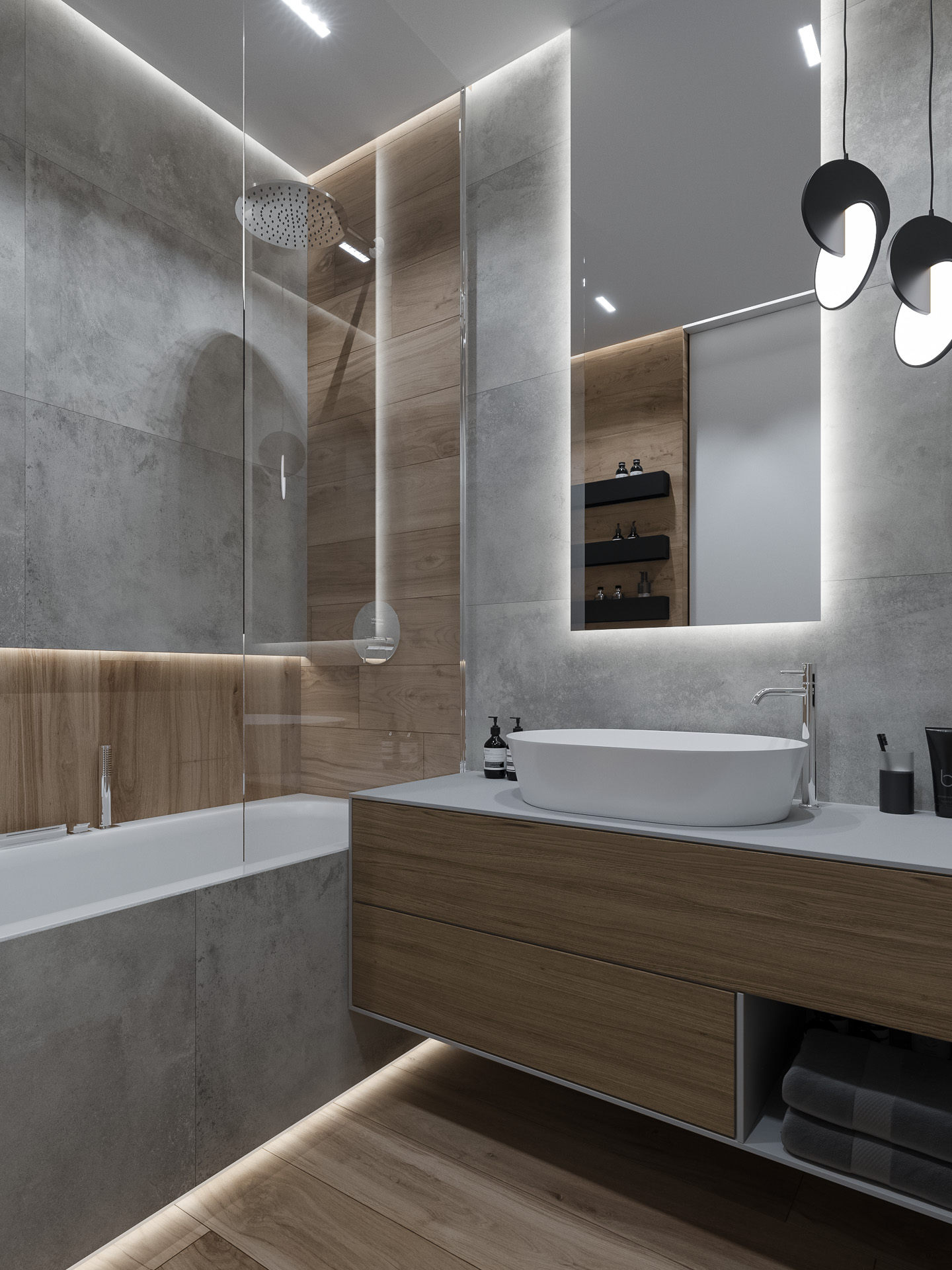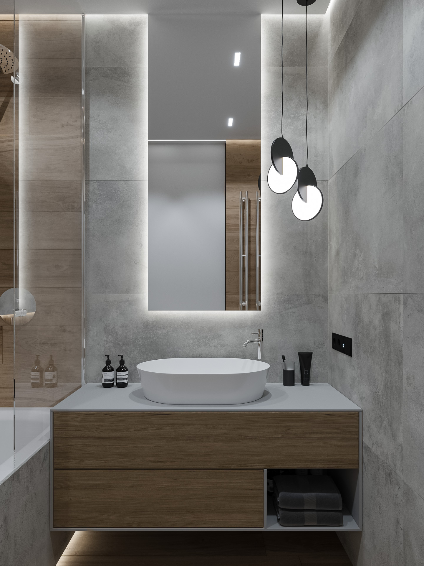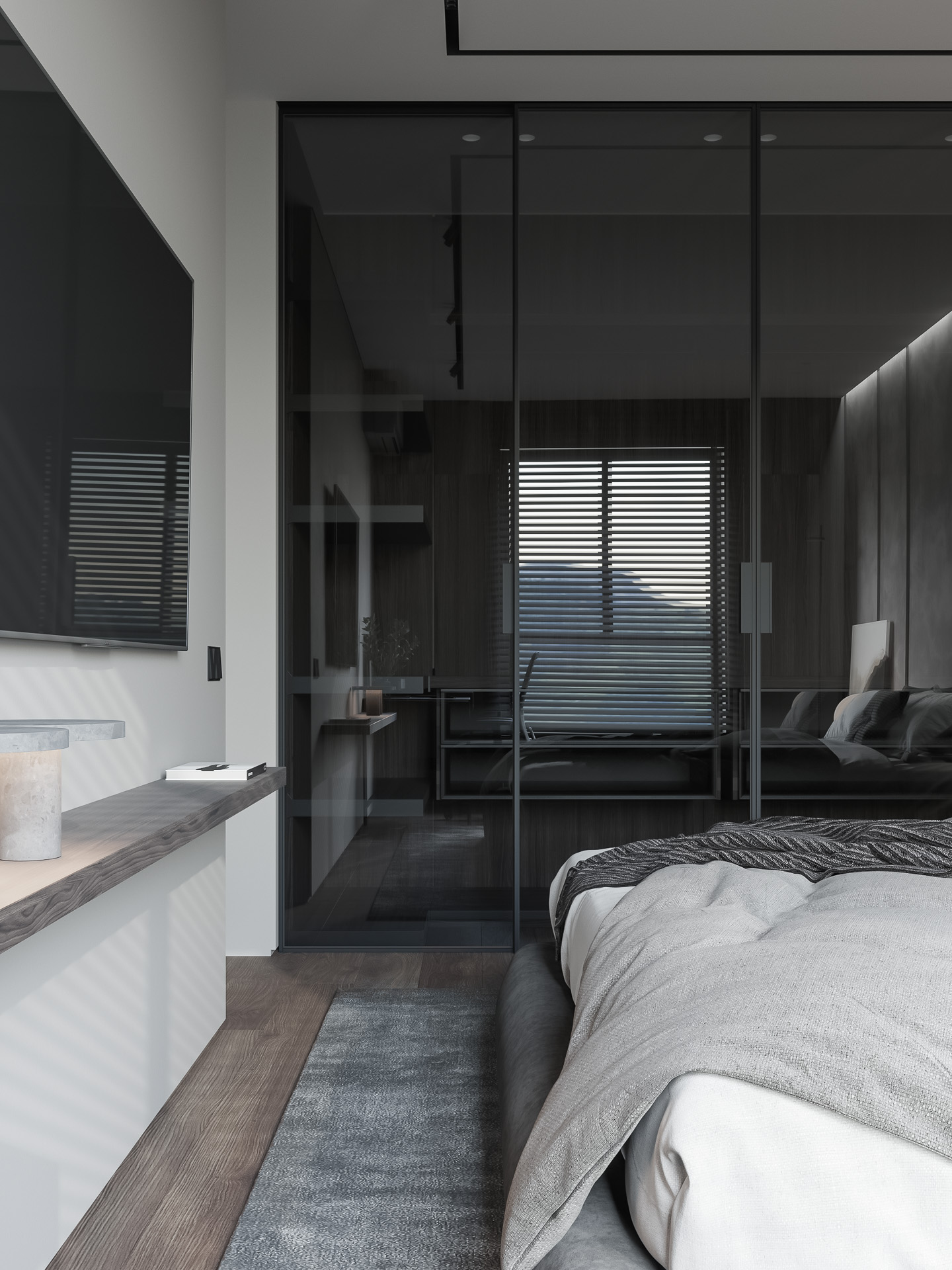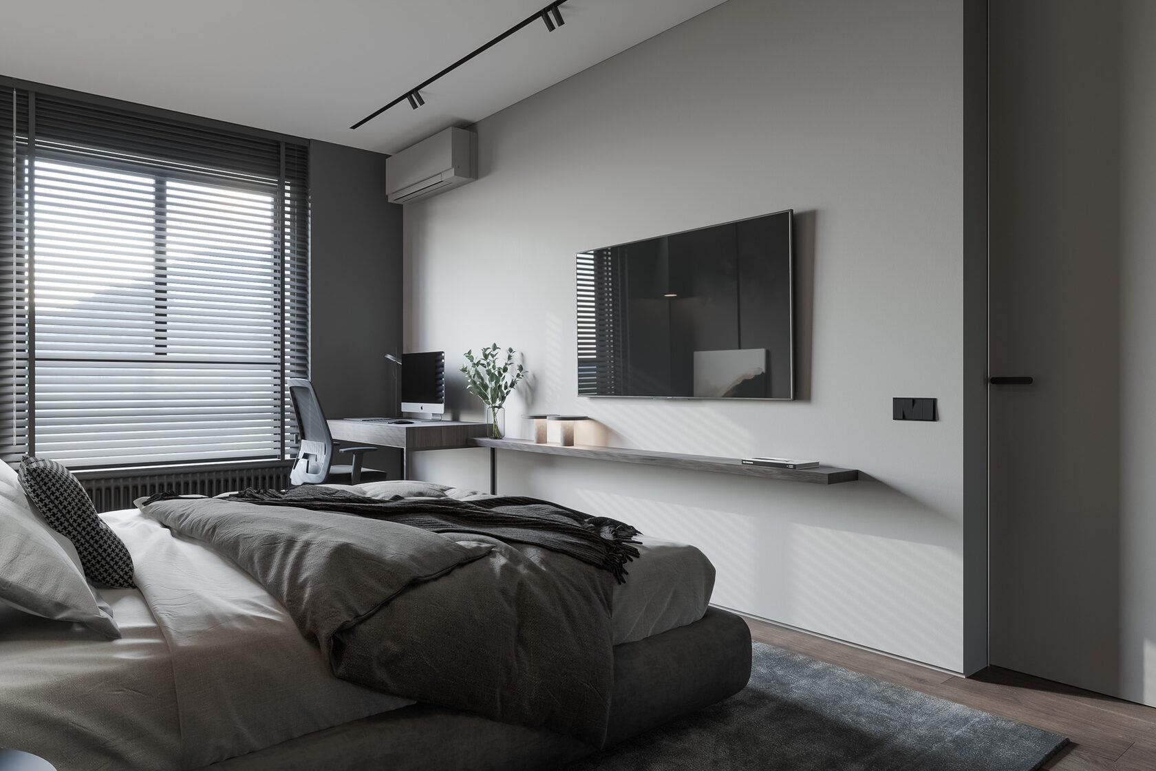 The interior of this apartment was designed for a young couple. The apartment is done in a modern style with hints of minimalism. The dominant color scheme of the interior is dark tones. Designer furniture, decorative panels, elegant tall doors, and minimalist lighting blend harmoniously here.