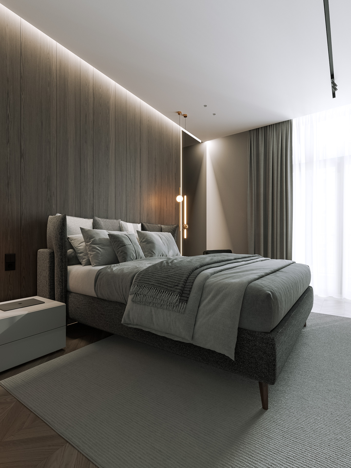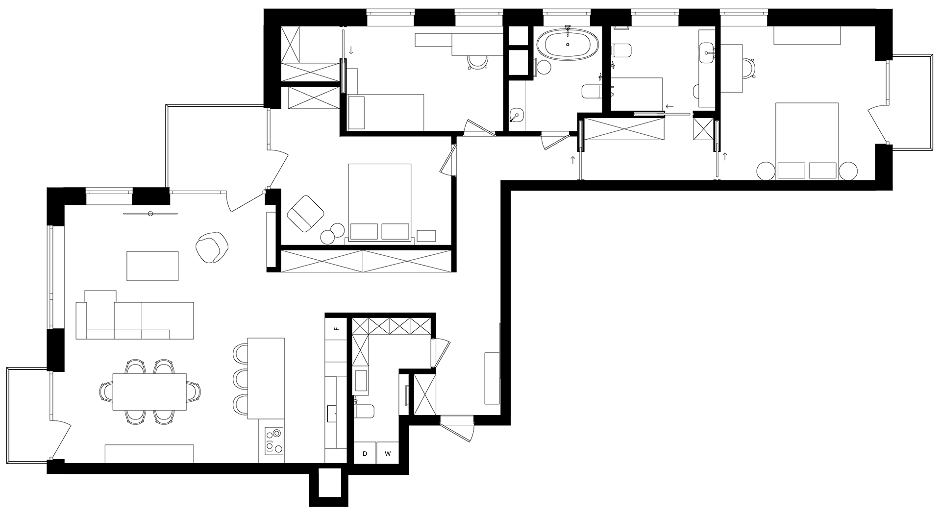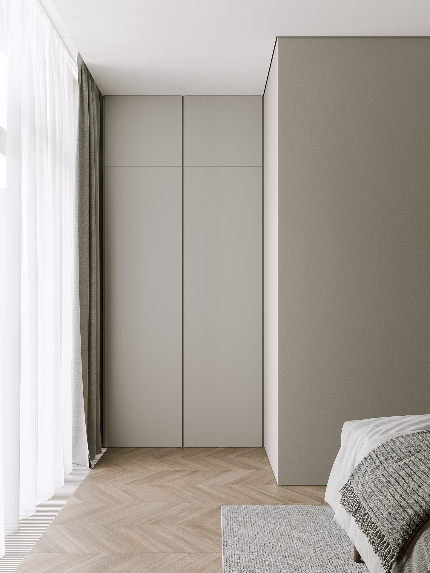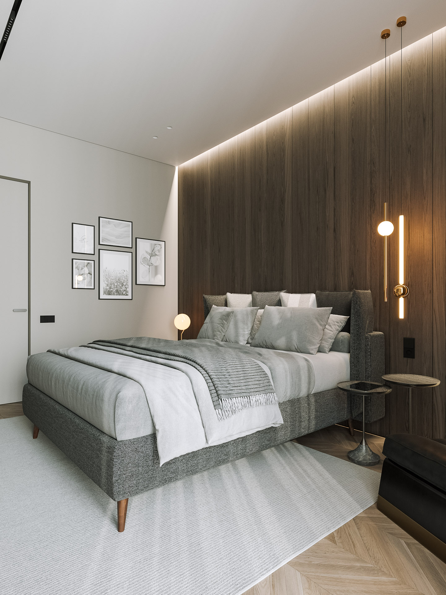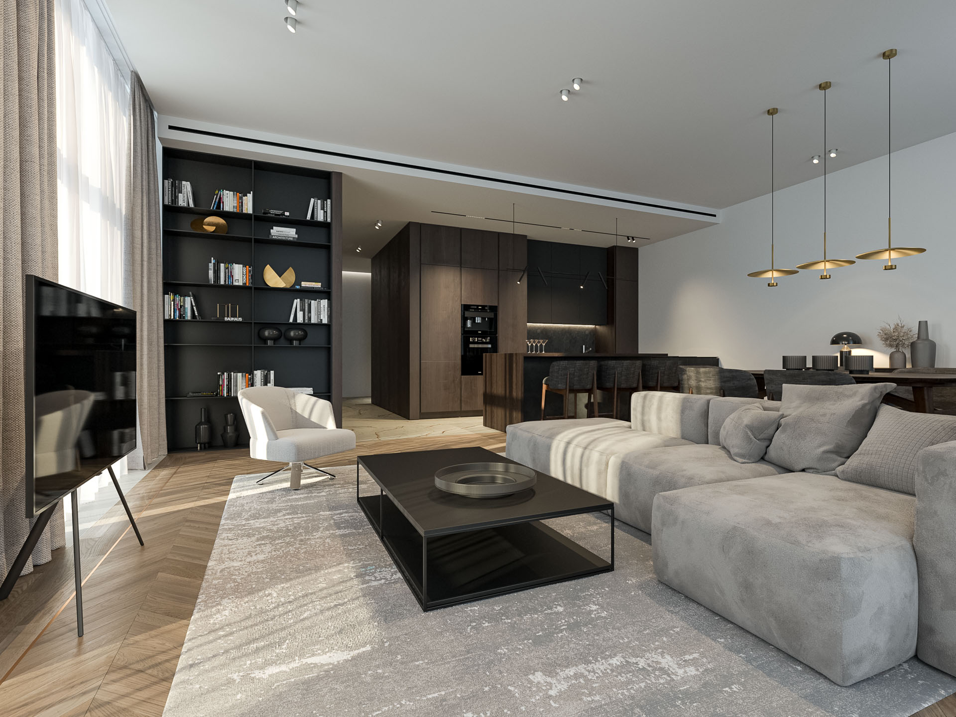 This project represents another successful collaboration with our esteemed client, and once again, we thoroughly enjoyed working on this apartment design. The objective was to create a modern-style interior that strikes a balance between simplicity and sophistication. The client desired a layout comprising three bedrooms, two separate bathrooms, a laundry room, and a combined living and dining area with an open kitchen.